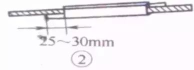 ②将两根线头相对插入并穿出压接管,使两线端各自伸出压接管25~30mm。